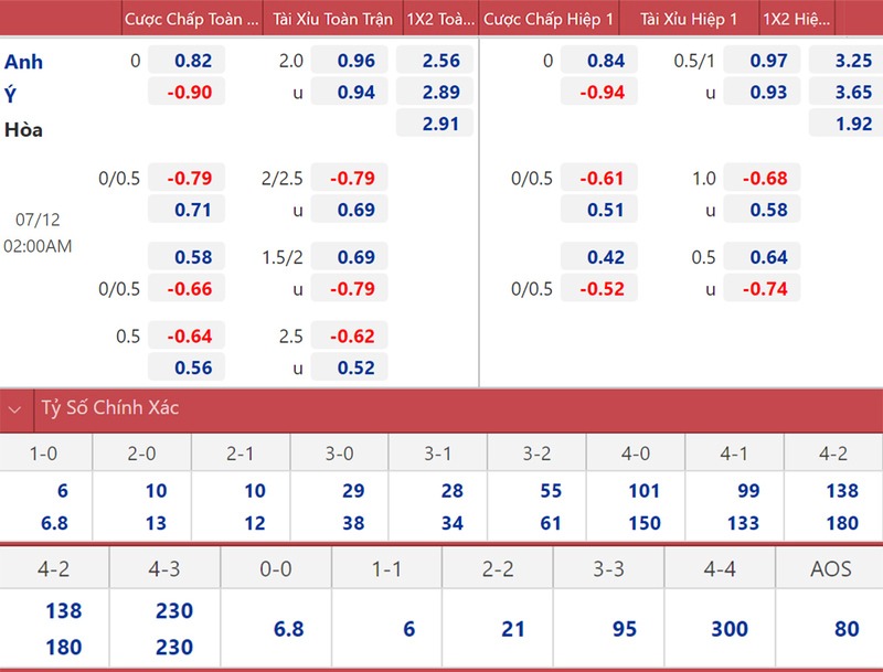 Tỷ lệ kèo trực tuyến chính xác nhất